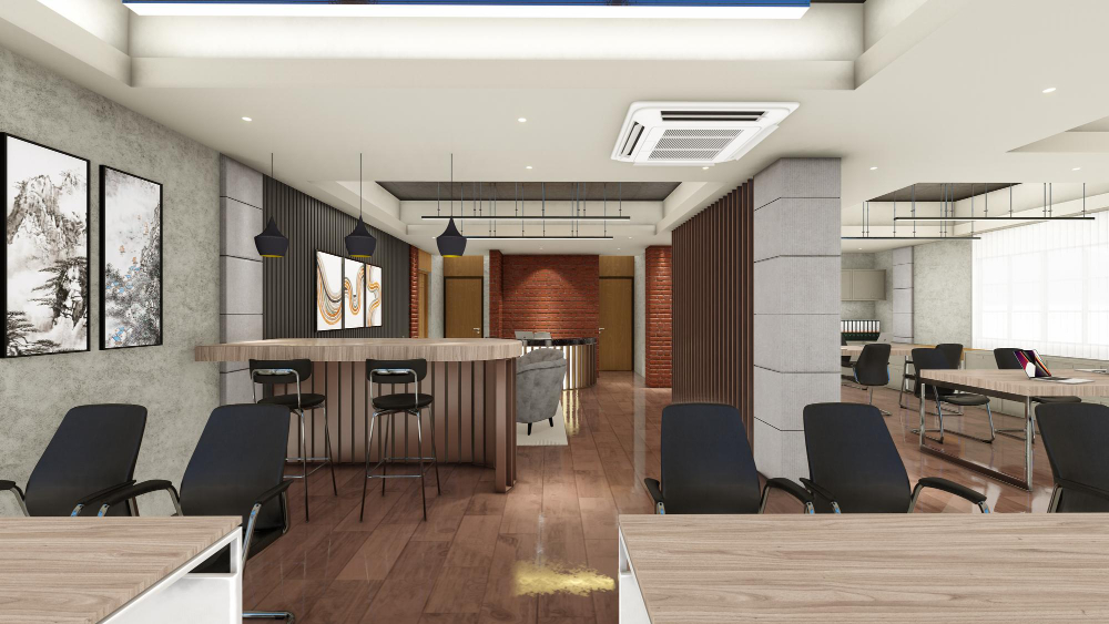 Our Gurugram corporate office project embraced a contemporary design with smart space utilization. Featuring open work areas, private cabins, and ergonomic furniture, the office was designed to encourage collaboration while maintaining a professional atmosphere.